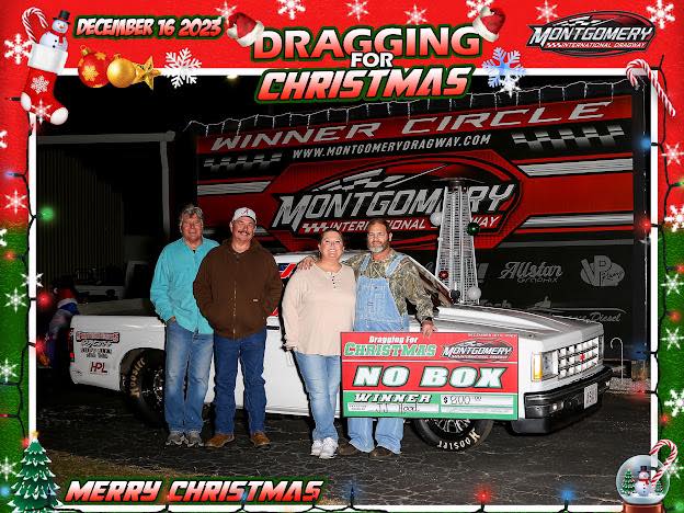 (DECEMBER 16, 2023) Montgomery International Dragway’s Inaugural Dragging for Christmas event was a success. Track owner and operator Brad Wheeler thanked the racers, fans, and the City of Montgomery for their support of this event that was held to give kids in the local community a memorable Christmas. All proceeds go to local charities.